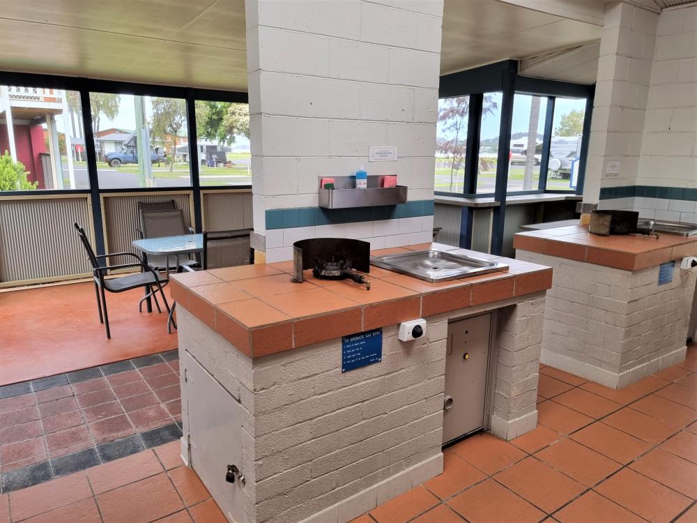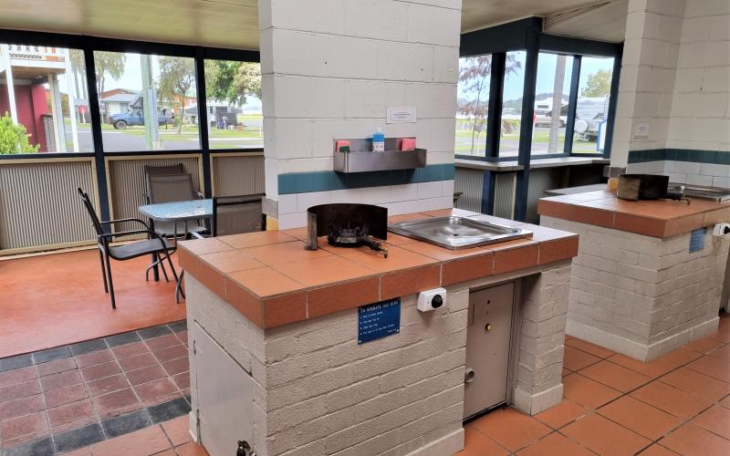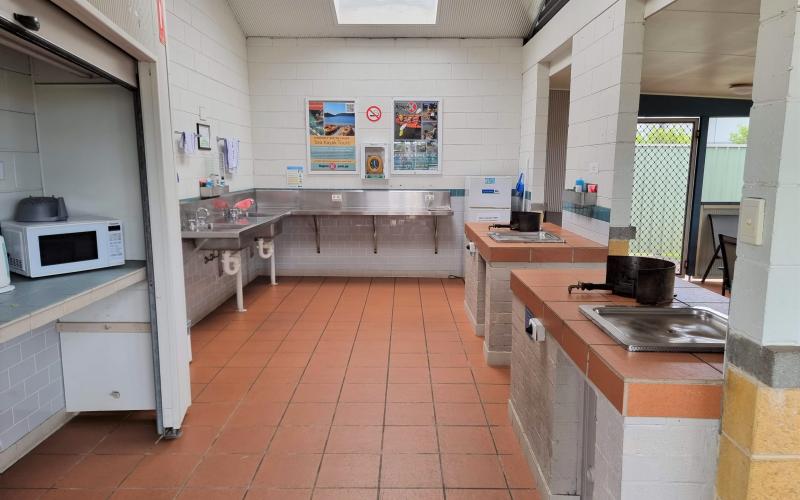 It has everything you need to cook up a feast and plenty of space for the whole family to help out. The Camp Kitchen is centrally located close to the Rec/TV Room and equipped with: